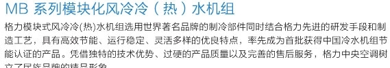 MB系列模塊化風(fēng)冷冷(熱)水機(jī)組 2019-11-12 本文被閱讀 1923次